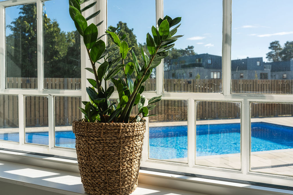 Nya finsnickrade fönster beställdes för att komplettera de ursprungliga, där det saknades, med samma spröjsindelning samt med valsat kulturglas. Fönsterna tillsammans med glaset ger ett rent magiskt ljus på insidan och fantastisk känsla när man blickar ut mot omgivningen. Mycket av panelen gick att bevara men har kompletterats med specialtillverkad panel som stämmer överens med originalet. Sedan har allt utvändigt trä samt fönster målats med linoljefärg, totalt har det gått över 150 liter linoljefärg av prima kvalitét från Engwall och Claesson.